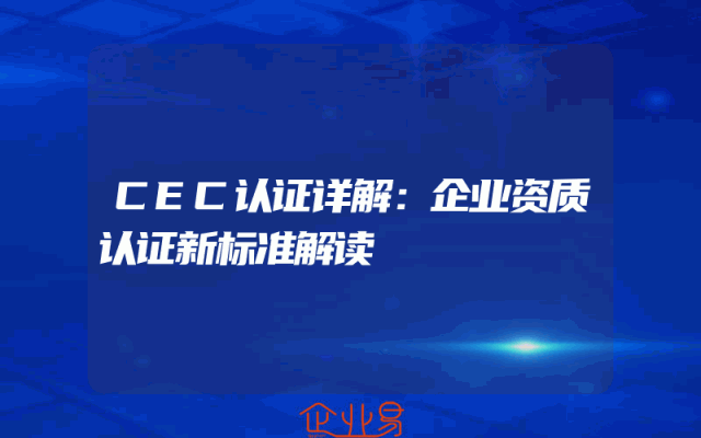 - CEC认证详解:企业资质认证新标准解读一、CEC认证概述CEC认证,即企业资质认证新标准,是近年来企业服务领域广泛关注的热点话题。随着市场竞争的日益激烈,企业资质认证已成为企业提升竞争力、展示实力的重要途径。二、CEC认证的重要性在当前经济