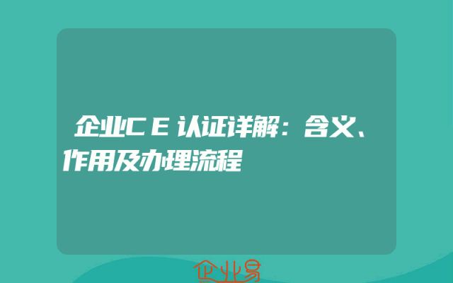- 企业CE认证详解:含义、作用及办理流程一、CE认证的含义CE认证,即欧盟安全认证,是欧洲经济区(EuropeanEconomicArea)内的一种产品安全标志,表示产品符合欧盟相关的健康、安全及环保标准。这一认证被视为产品进入欧洲市场的通行