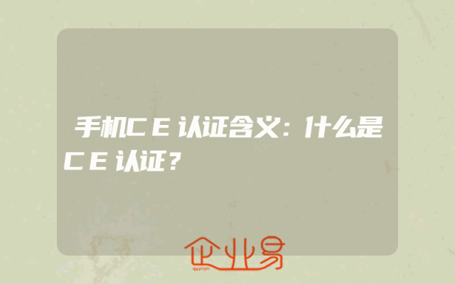 - 手机CE认证含义解析:什么是CE认证?一、CE认证简介CE认证,即欧盟市场准入认证,是欧洲共同体针对产品的安全与健康标准而设立的一种强制性认证制度。对于想要进入欧洲市场的手机产品而言,CE认证是其必须跨越的一道门槛。这一认证制度的主要目的是