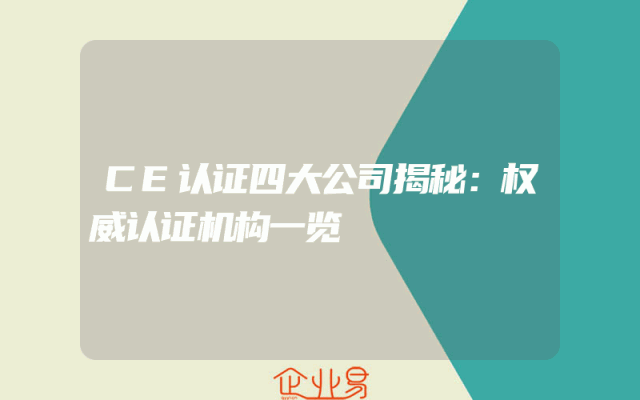 - CE认证四大公司揭秘:权威认证机构一览一、CE认证概述CE认证是欧洲联盟(EU)的一种强制性安全认证,对于许多企业来说,这是向欧洲市场进军的重要通行证。欧盟为此制定了完善的认证机制,并由专门的权威认证机构来执行,以确保产品的安全与品质。二、