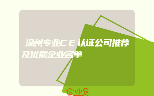 - 温州专业CE认证公司推荐及优质企业名单一、CE认证的重要性在全球化背景下,企业的产品要进入欧洲市场,必须通过CE认证。这一认证对于产品的安全、健康和环保等方面有着严格的要求。因此,选择一家专业的CE认证公司至关重要。温州地区有多家专