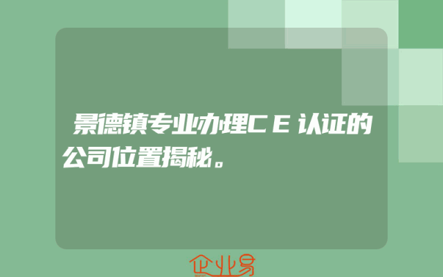 - 景德镇专业办理CE认证的公司位置揭秘。