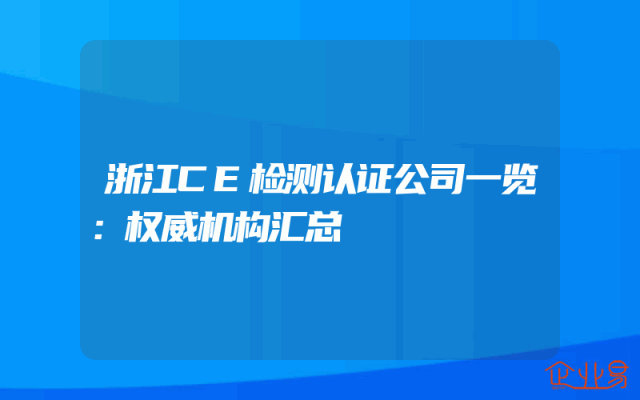 - 浙江CE检测认证公司一览:权威机构汇总一、引言随着国际贸易的不断发展,产品质量和安全性成为了企业走向国际市场的关键要素。CE认证作为欧洲市场准入的重要标准,受到了越来越多企业的重视。在浙江地区,众多专业的CE检测认证公司应运而生,为企业提供