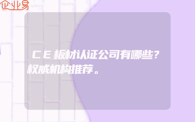 - CE板材认证公司有哪些?权威机构推荐。
