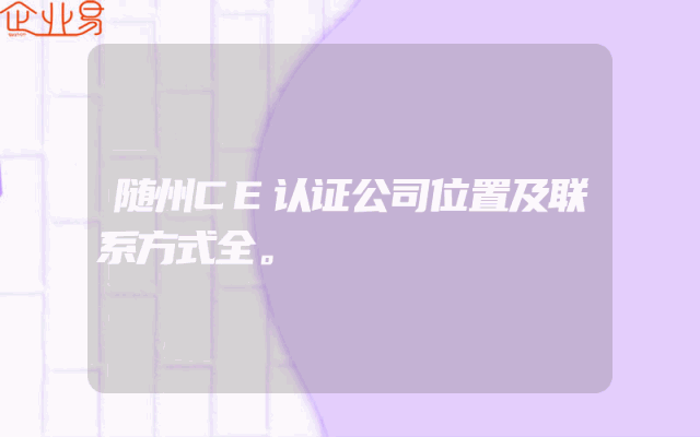 - 随州CE认证公司位置及联系方式全。