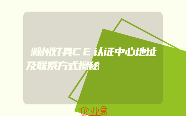 - 滁州灯具CE认证中心地址及联系方式揭秘