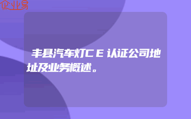 - 丰县汽车灯CE认证公司地址及业务概述。