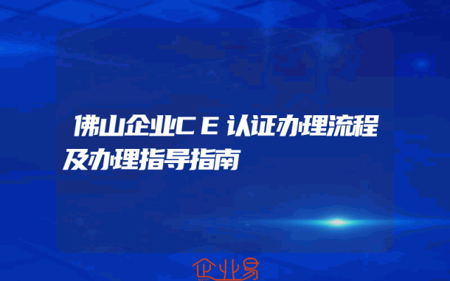- 佛山企业CE认证办理流程及办理指导指南