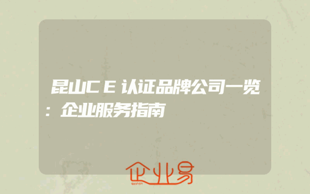 - 昆山CE认证品牌公司一览:企业服务指南