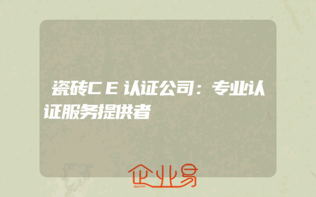 - 瓷砖CE认证公司:专业认证服务提供者一、引言在建筑建材领域,瓷砖作为一种重要的装饰材料,其质量与安全性能至关重要。为了确保产品的合规性和市场准入,瓷砖CE认证成为了企业不可或缺的一环。本文将为您介绍一家专业的瓷砖CE认证公司,该公司以其丰富