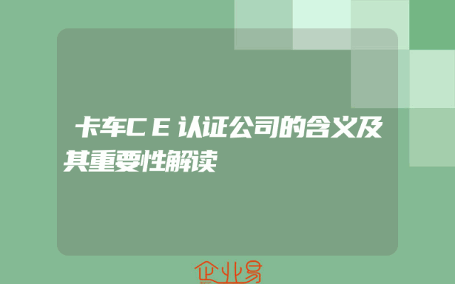 - 卡车CE认证公司的含义及其重要性解读一、什么是卡车CE认证公司卡车CE认证公司主要是指那些协助卡车制造商进行产品认证的企业服务机构。这里的CE认证是一种针对产品和其安全性能的强制认证,用以证明产品符合欧盟的各项安全标准和指令要求。在