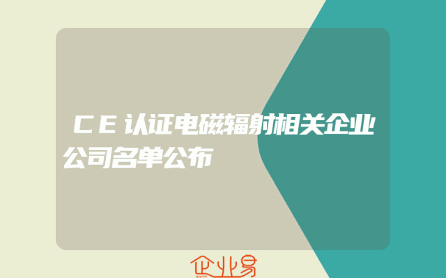 - CE认证电磁辐射相关企业公司名单公布一、引言随着电磁辐射技术的广泛应用,相关的安全问题也日益受到重视。在欧洲市场,CE认证成为众多电磁辐射相关企业的必经之路。为了保障公众的健康与安全,相关企业需通过严格的CE认证,并公开接受公众监督