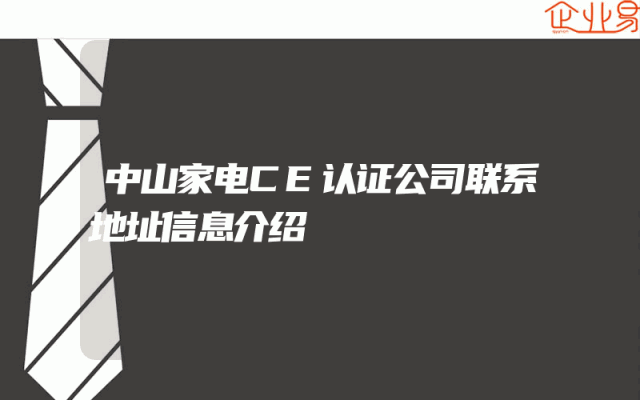 - 中山家电CE认证公司联系地址信息介绍一、中山家电行业的发展概述中山市作为家电产业的重要基地之一,家电产品种类丰富,质量上乘。随着市场的不断发展和国际竞争的加剧,家电企业需要不断提高产品质量和技术水平,同时需要通过各类认证来加强自身的市场竞争