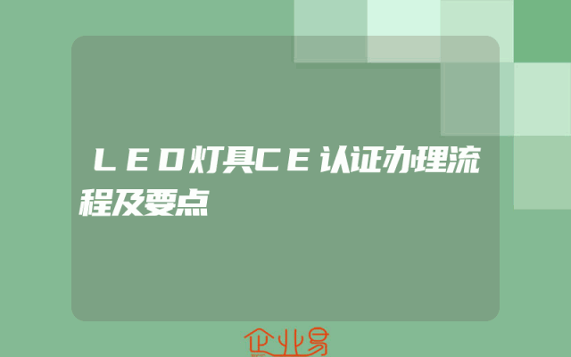 - LED灯具CE认证办理流程及要点解析一、了解CE认证基本要求在办理LED灯具的CE认证之前,首先要对CE认证有一个基本的了解。CE认证是针对产品安全与健康的一种认证,意在消除产品中的潜在风险,确保产品在欧洲市场上可以安全自由流通。LED灯具