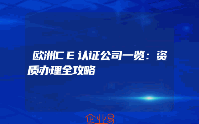 - 欧洲CE认证公司一览:资质办理全攻略一、CE认证简介在欧洲市场,产品想要合法销售,就必须符合相关法规和标准。其中,CE认证便是产品进入欧洲市场的通行证。CE认证意味着产品符合欧盟法规规定的健康、安全及环保要求,是产品可以在欧盟各成员国之间自