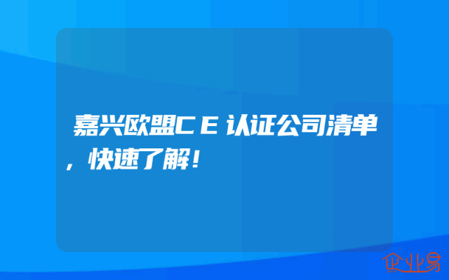 - 嘉兴欧盟CE认证公司清单,快速了解!
