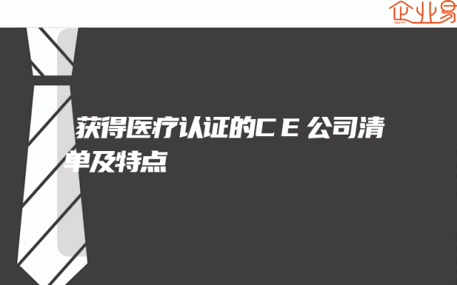 - 医疗认证的CE公司清单及特点解析一、CE公司概览在医疗设备与器械领域,获得医疗认证的企业众多,其中CE(CertificationEurope)认证因其广泛性和权威性受到众多企业的重视。本文旨在详细解析获得医疗认证的CE公司清单及其