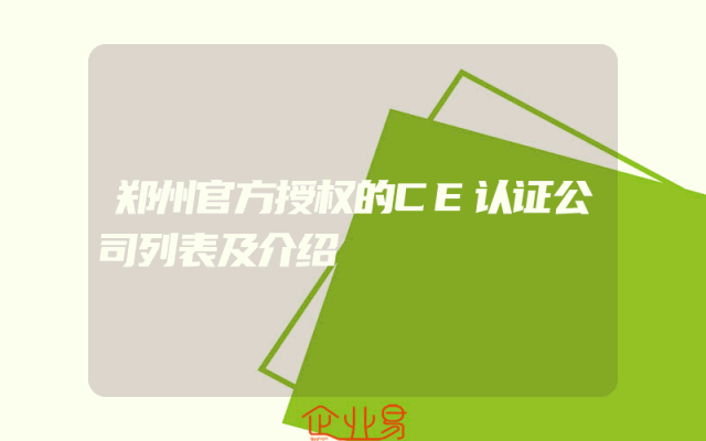 - 郑州官方授权的CE认证公司列表及介绍