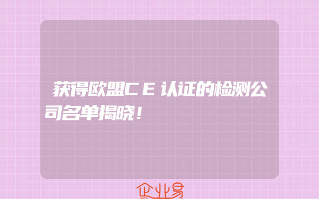 - 获得欧盟CE认证的检测公司名单揭晓!