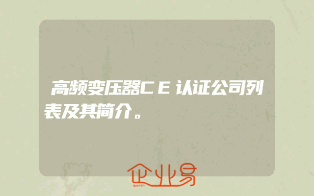 - 高频变压器CE认证公司列表及其简介。