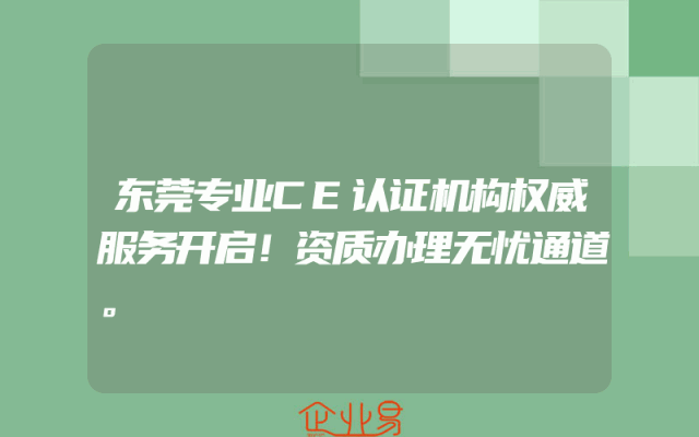 - 东莞专业CE认证机构权威服务开启!资质办理无忧通道。