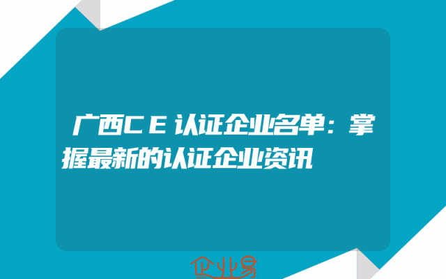 - 广西CE认证企业名单:掌握最新的认证企业资讯
