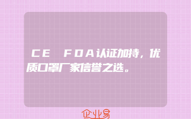 - CE FDA认证加持,优质口罩厂家信誉之选。