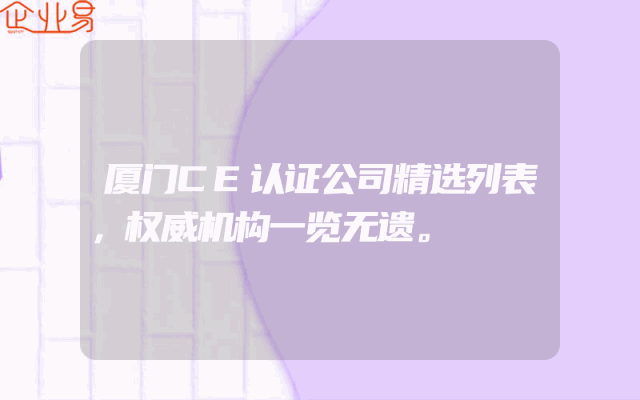 - 厦门CE认证公司精选列表,权威机构一览无遗。