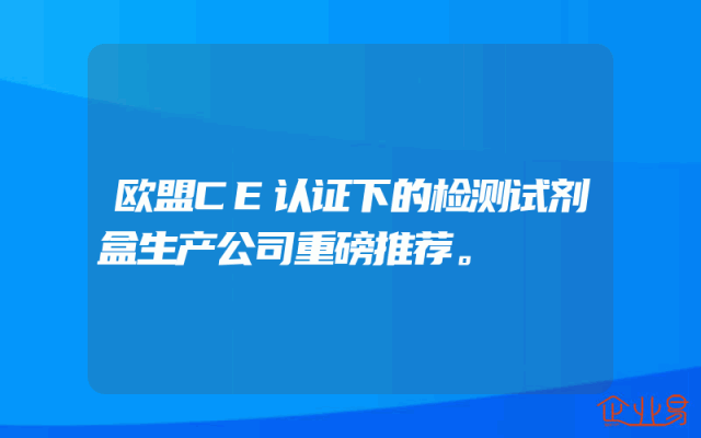 - 欧盟CE认证下的检测试剂盒生产公司重磅推荐。