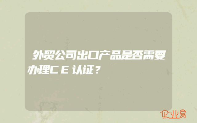 - 外贸公司出口产品是否需要办理CE认证?