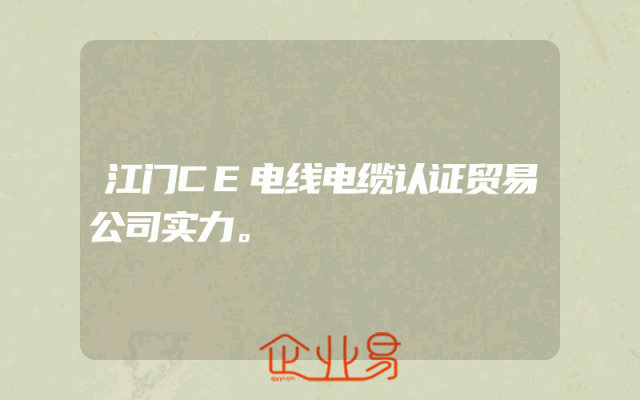 - 江门CE电线电缆认证贸易公司实力。