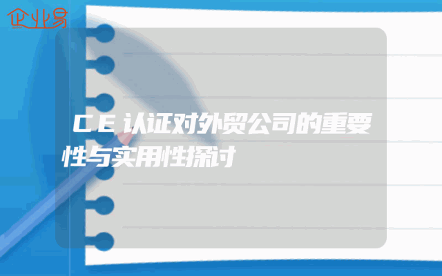 - CE认证对外贸公司的重要性与实用性探讨