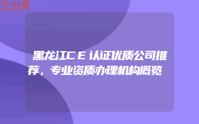 - 黑龙江CE认证优质公司推荐,专业资质办理机构概览