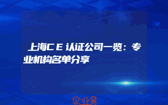 - 上海CE认证公司列表:权威认证机构推荐