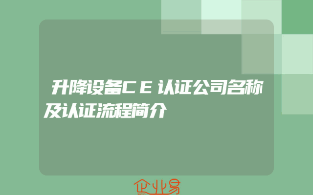- 升降设备CE认证公司名称及认证流程简介