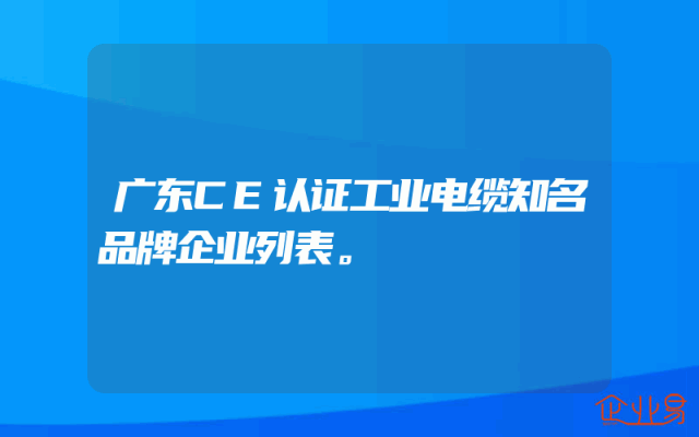 - 广东CE认证工业电缆知名品牌企业列表。