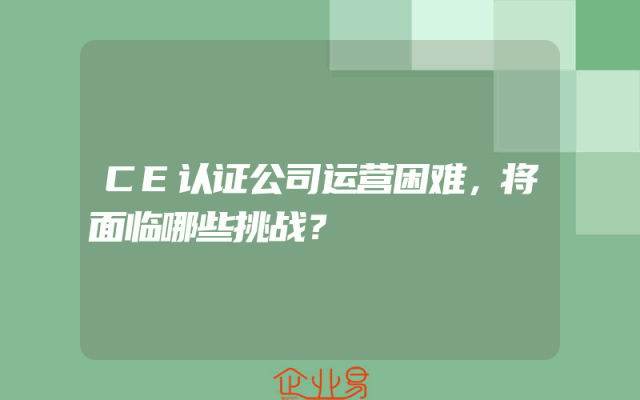 - CE认证公司运营困难,将面临哪些挑战?