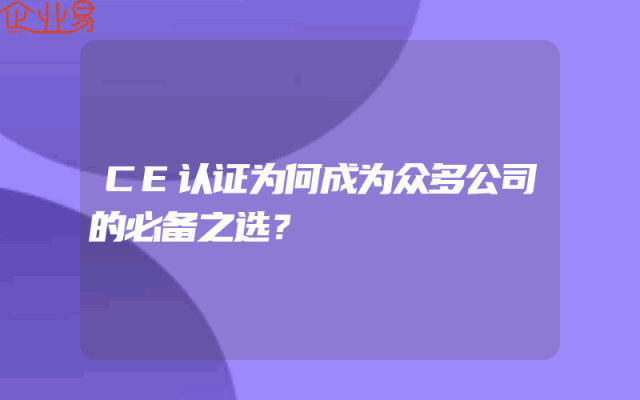 - CE认证为何成为众多公司的必备之选?一、CE认证概述随着欧洲市场的日益开放和全球化趋势的加强,CE认证已成为许多企业进军欧洲市场的必备通行证。CE认证,即“符合欧洲标准”的标志,表示产品符合欧盟相关法规的强制性要求,可以在欧盟各成员
