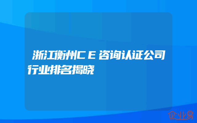 - 浙江衡州CE咨询认证公司行业排名揭晓