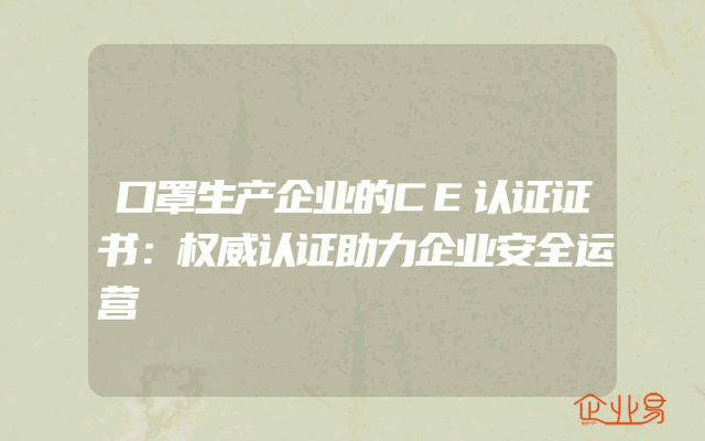 - 口罩生产企业的CE认证证书:权威认证助力企业安全运营