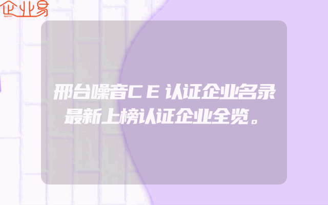 - 邢台噪音CE认证企业名录 最新上榜认证企业全览。