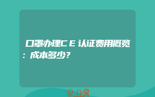 - 口罩办理CE认证费用概览:成本多少?一、CE认证简述在出口口罩产品到欧洲市场的过程中,CE认证是不可或缺的一环。CE认证代表着产品符合欧盟的相关法规与指令要求,是产品进入欧洲市场的通行证。对于口罩这样的防护用品,其质量和安全性要求尤为严格。