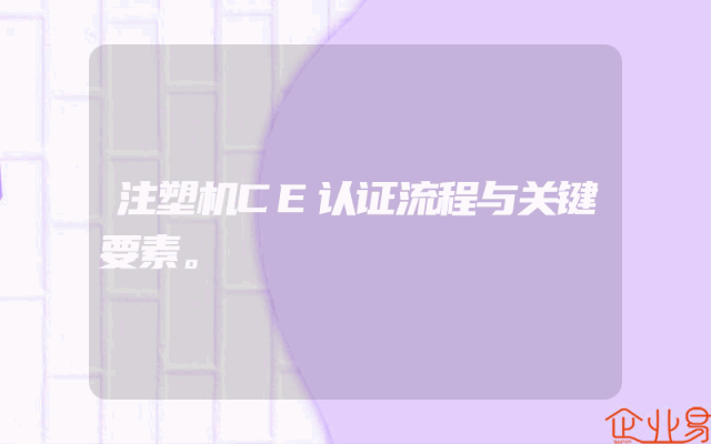 - 注塑机CE认证流程与关键要素解析一、CE认证简介随着国际贸易的不断发展,产品出口到欧洲市场必须满足相关的安全和健康标准。对于注塑机而言,获得CE认证是进入欧洲市场的必要条件。CE认证代表了产品符合欧洲联盟的法律、法规以及协调标准的要求,是产