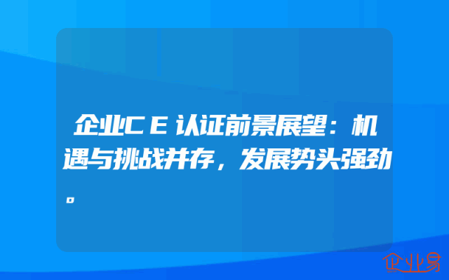 - 企业CE认证前景展望:机遇与挑战并存,发展势头强劲。