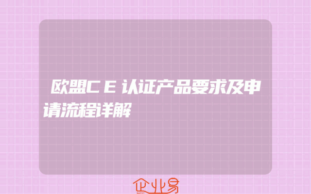 - 欧盟CE认证产品要求及申请流程详解
