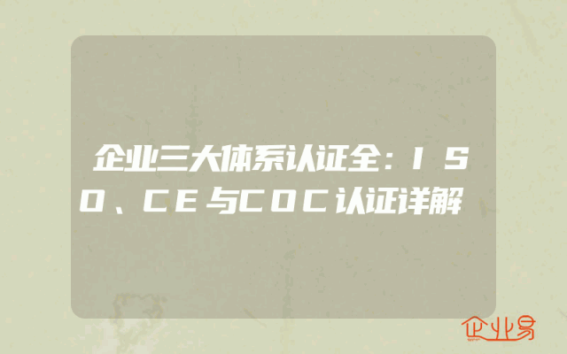 - 企业三大体系认证全:ISO、CE与COC认证详解