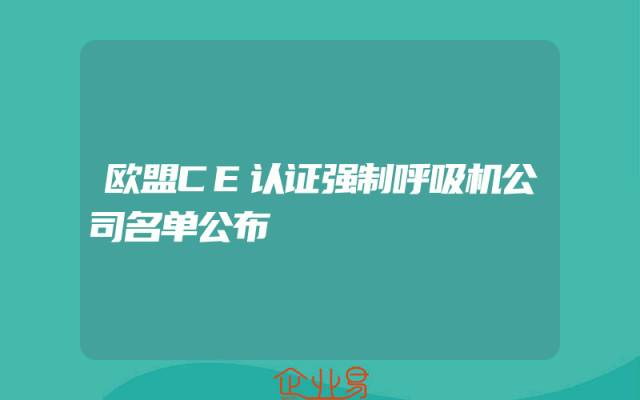 - 欧盟CE认证强制呼吸机公司名单公布