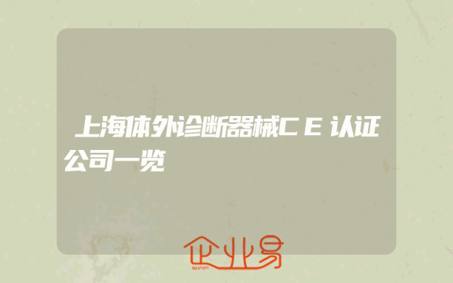 - 上海体外诊断器械CE认证公司一览