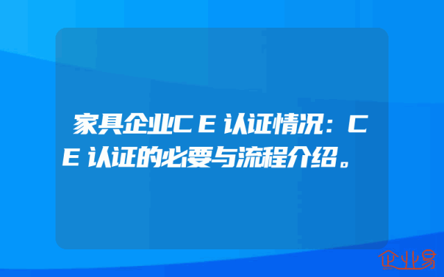 - 家具企业CE认证情况:CE认证的必要与流程介绍。