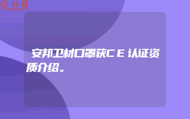 - 安邦卫材口罩获CE认证资质介绍。